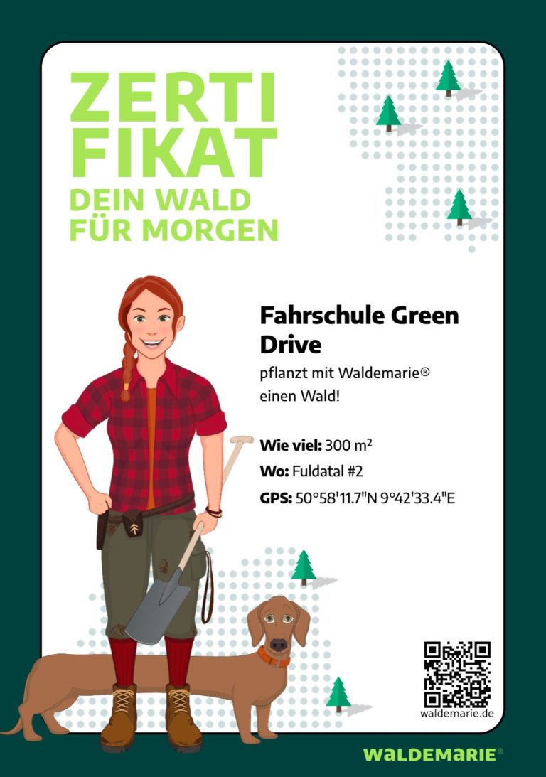 Bei Green Drive möchten wir nicht nur das Fahren lehren, sondern auch einen Beitrag zur Umwelt leisten. Deshalb pflanzen wir für jede Anmeldung bei uns, einen Baum. Damit kompensieren wir den CO2-Ausstoß der Fahrzeuge und tragen zum Schutz unserer Umwelt bei.